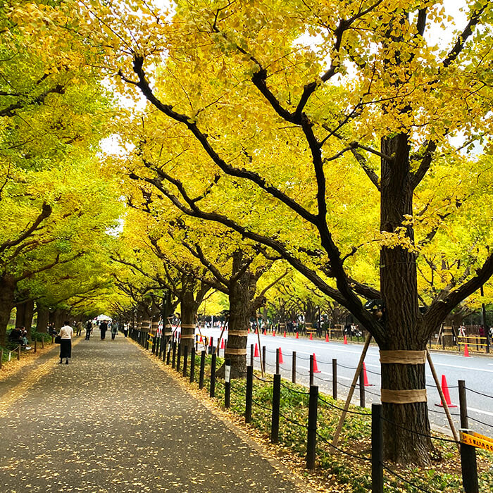 近くには明治神宮があり、秋には付近のいちょう通りで美しい紅葉を見ることが出来ます。